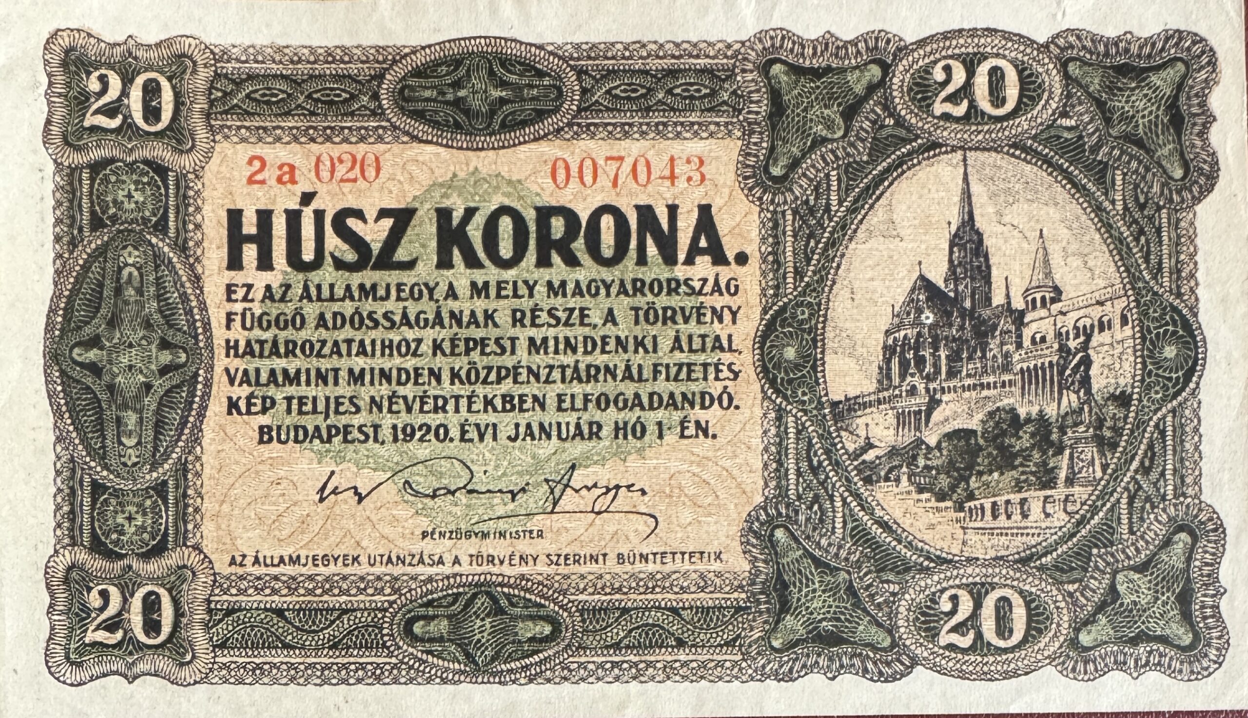 1920. 20 korona bankjegy (UNC)