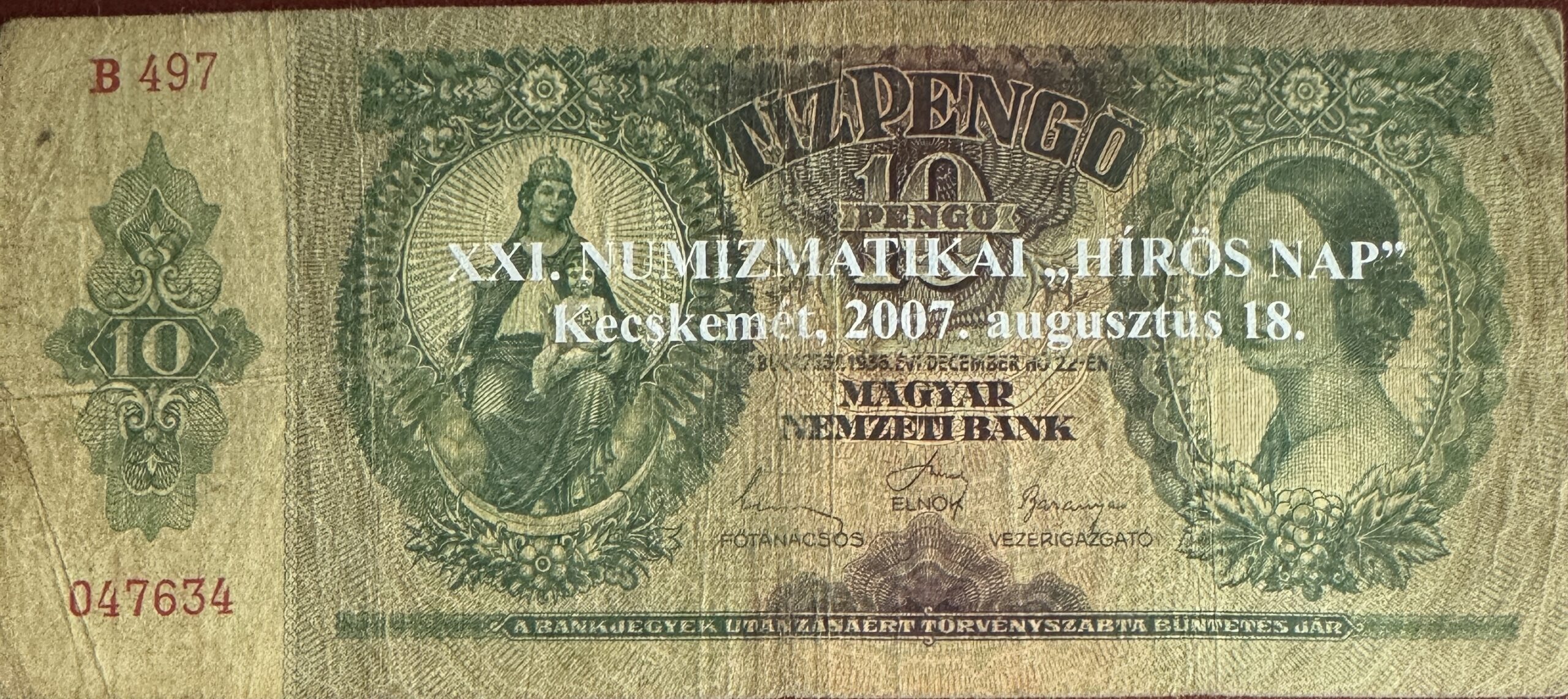 „1936. 10 pengő bankjegy felülnyomott (F)” értékelése elsőként