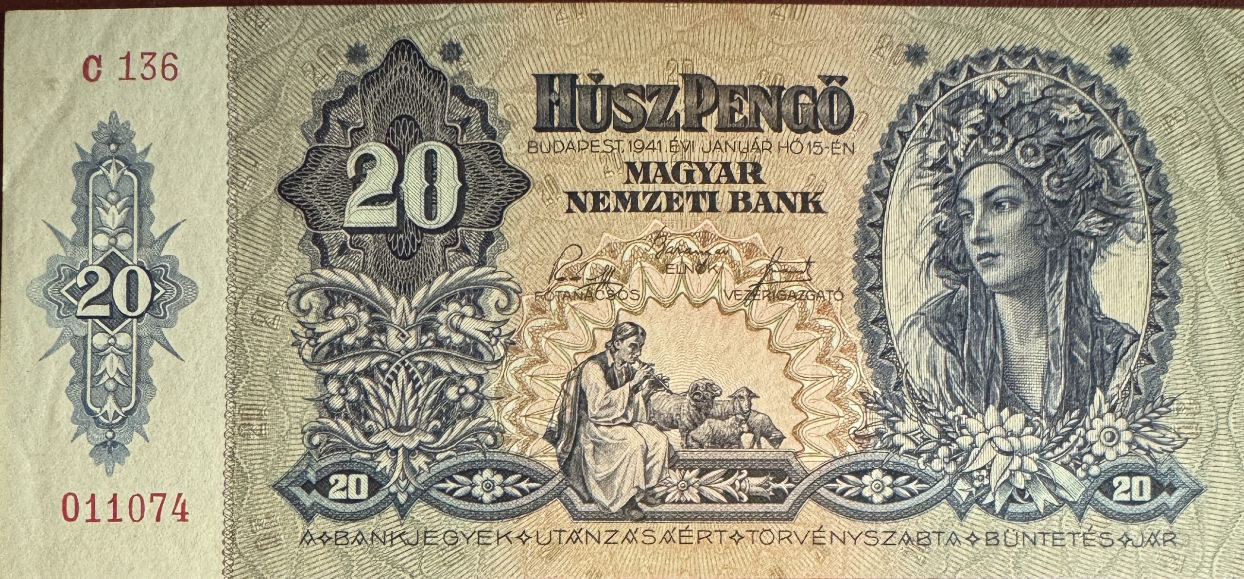 1941. 20 pengő bankjegy (UNC)
