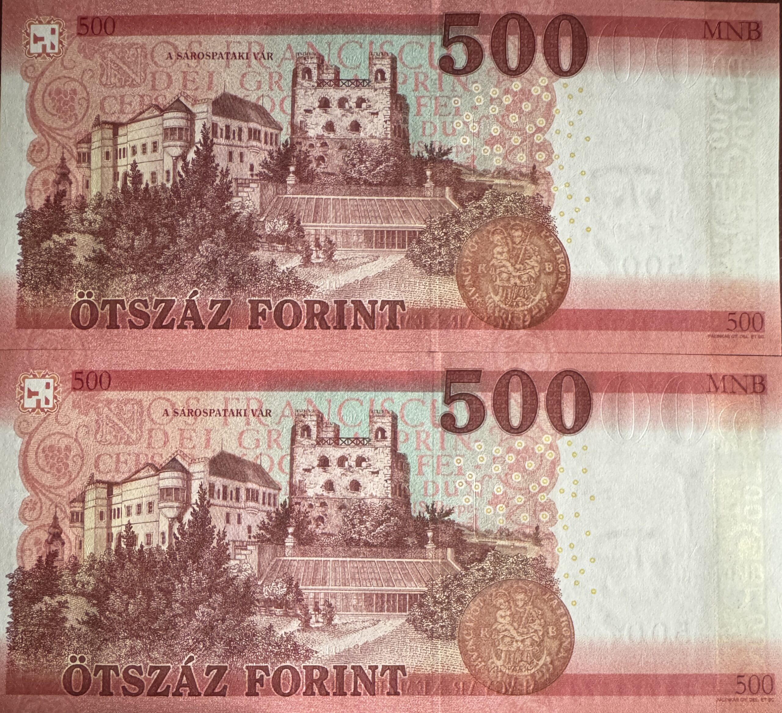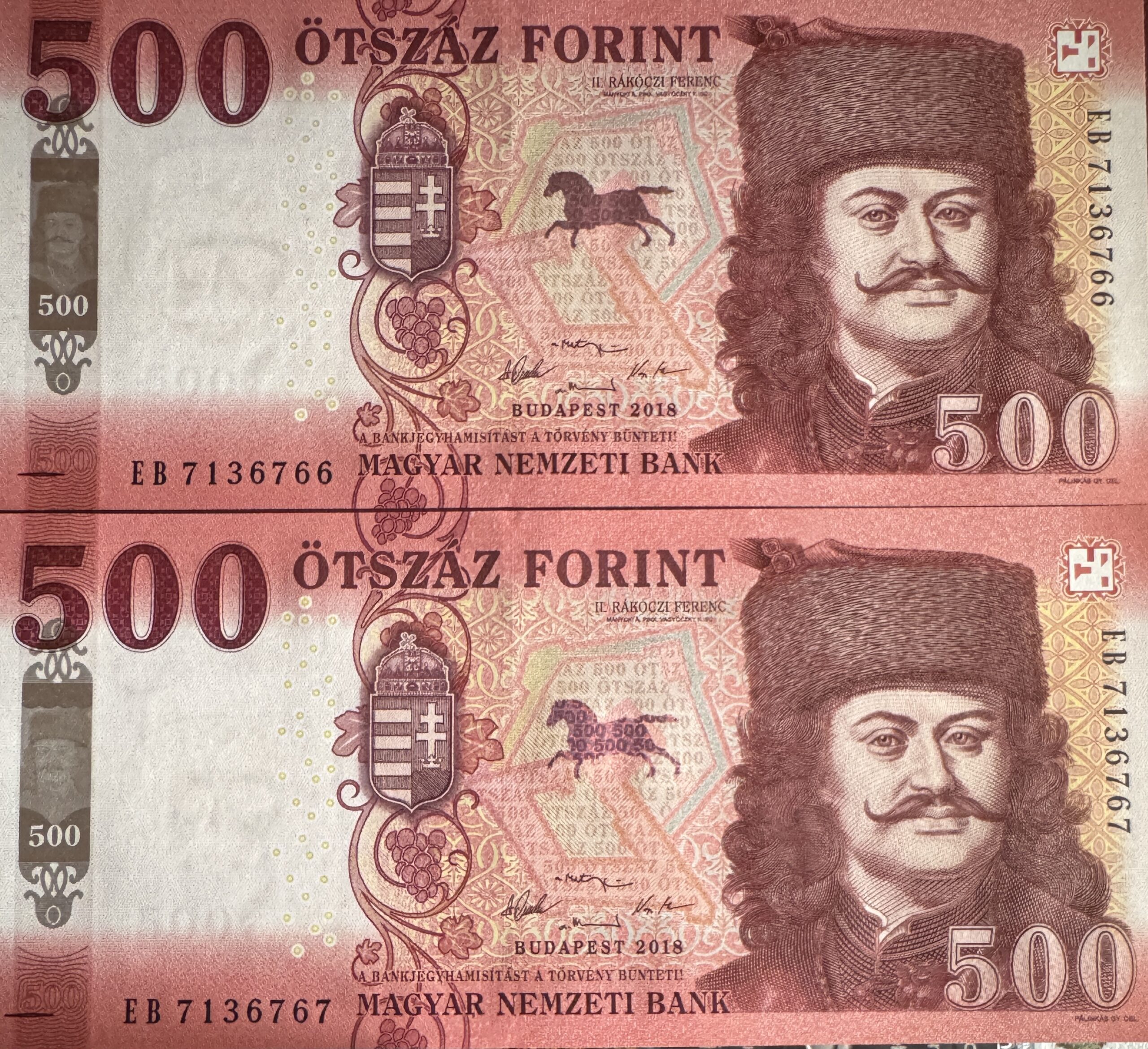 500 forint bankjegy 2 db sorszámkövető 2018 (UNC)