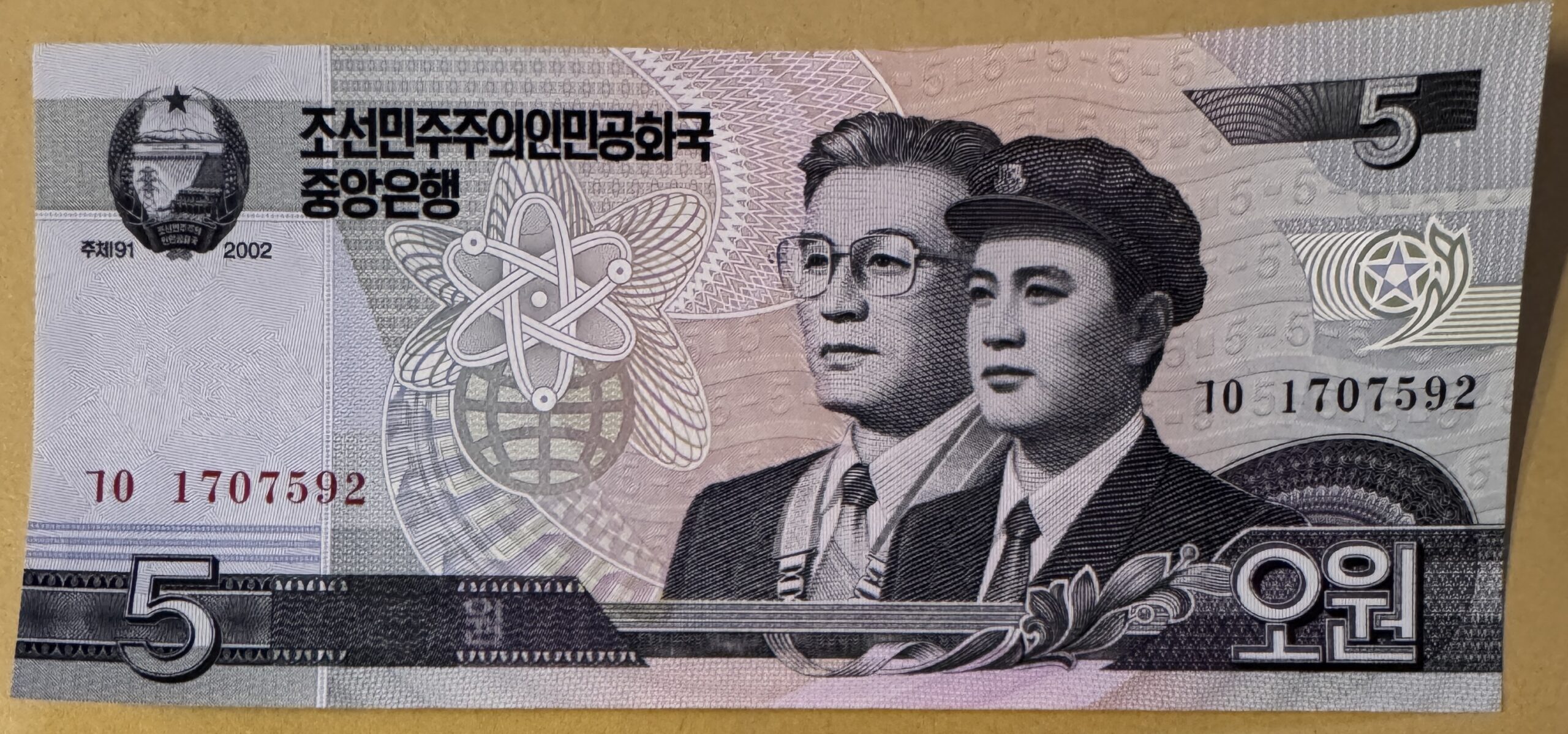 Észak-Korea 5 won bankjegy (UNC) 2009