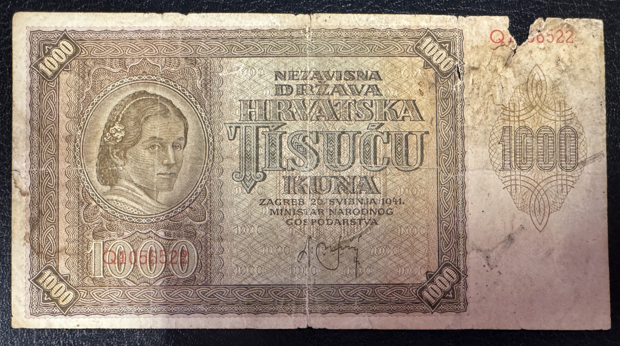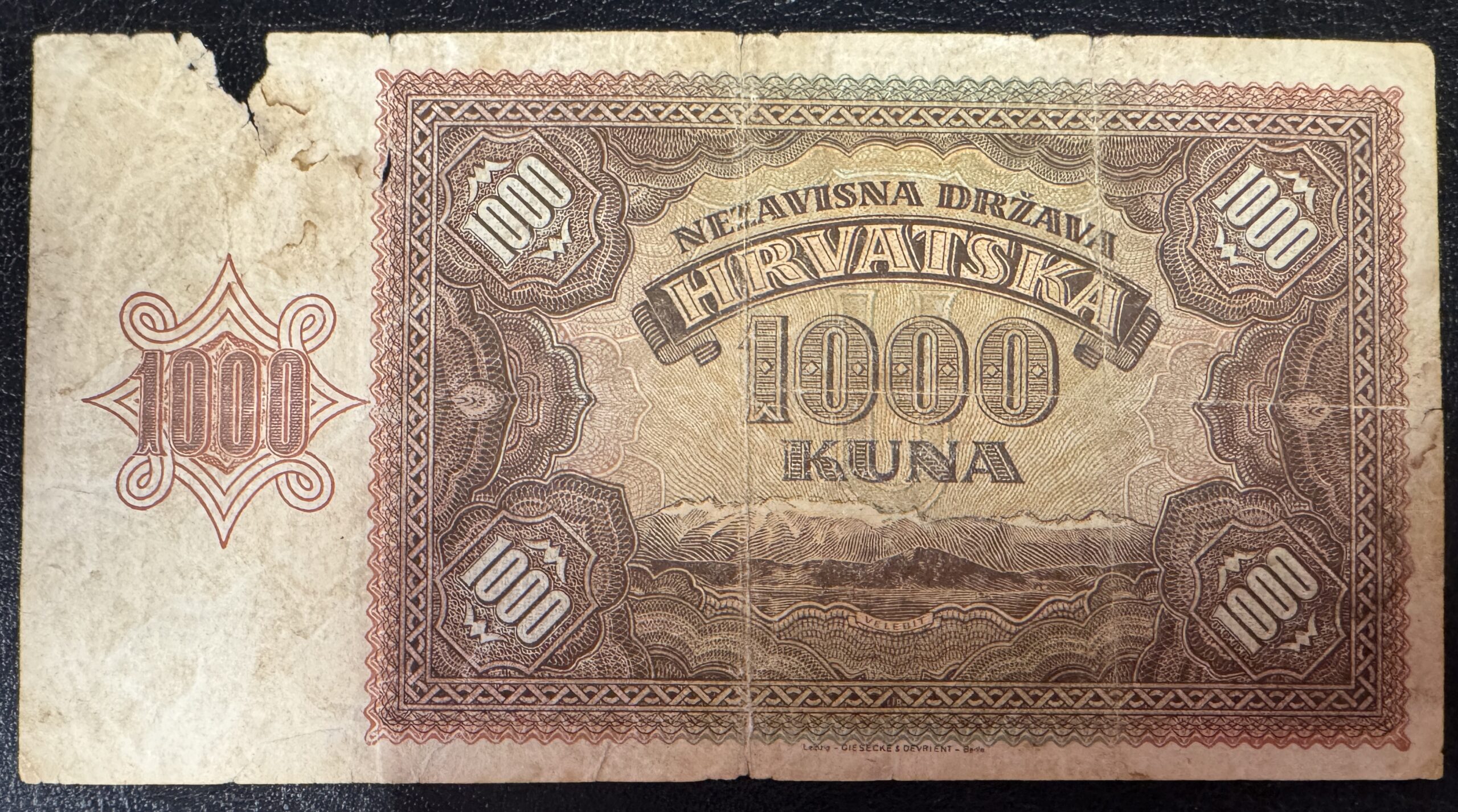 „Horvátország/Független Horvát állam 1000 kuna bankjegy 1941” értékelése elsőként