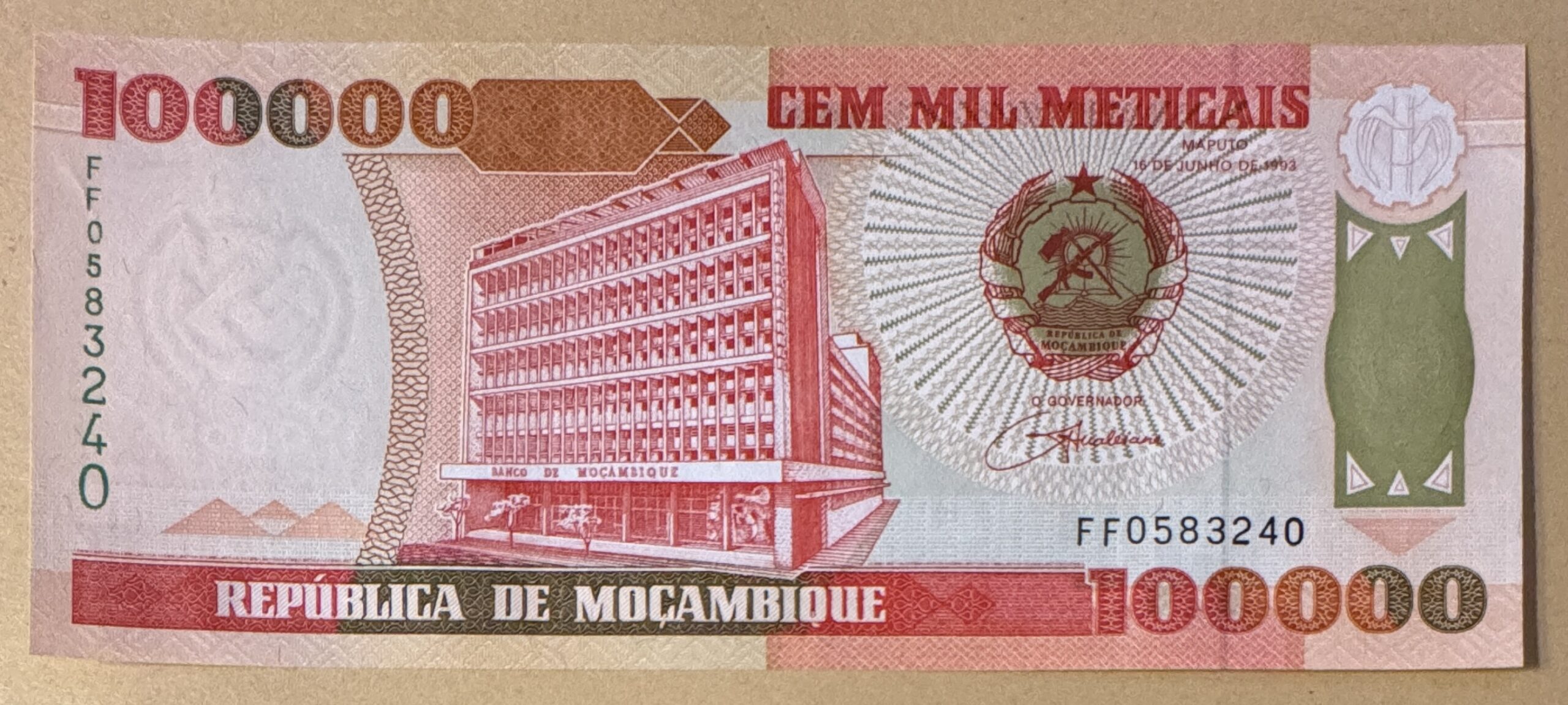 Mozambik 100.000 meticais bankjegy (UNC) 1993