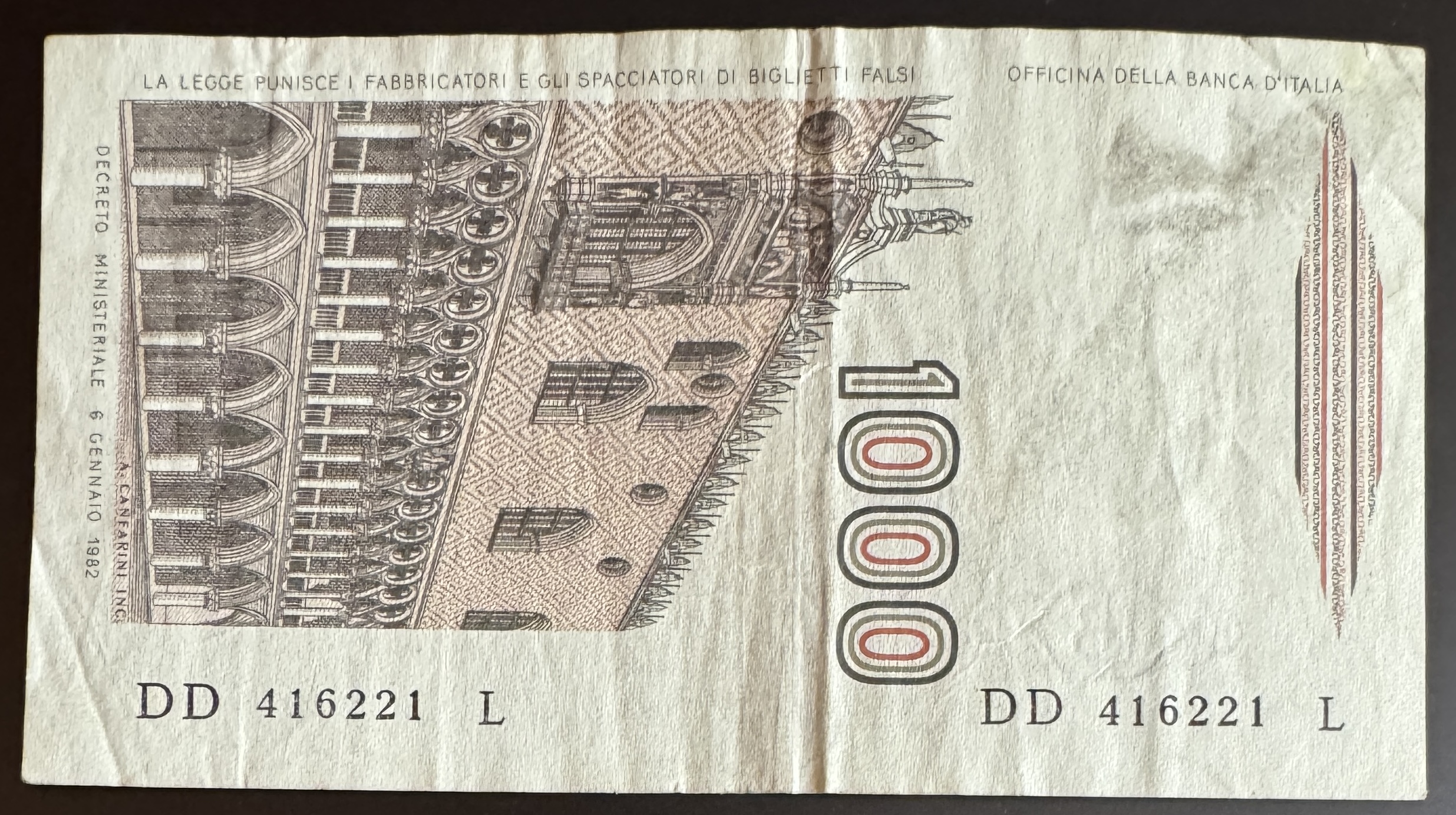„Olaszország 1000 lira bankjegy 1982” értékelése elsőként